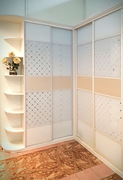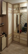 Прихожая с угловым шкафом-купе и матовым белым стеклом