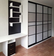 Шкаф в корпусе под венге со встроенным в торец стеллажом.
