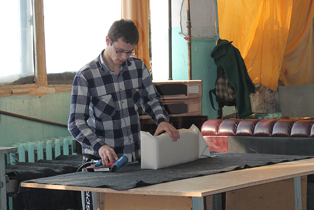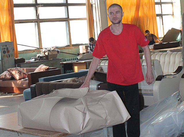 – Для мебели, которая идет на экспорт, используют усиленные материалы, – рассказывает о тонкостях упаковочного процесса Сергей. – Вот это кресло «укутано» в картон. Также мы используем пузырьковую пленку и поролон. Не всякое изделие выдержит дорогу в 2 тысячи километров, если оно плохо упаковано. Постоянная тряска в дороге даже из хорошей мебели может сделать дрова. Часть наших изделий отправляется фурами, часть вагонами.