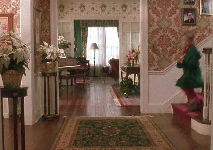 «Один дома» — это семейная атмосфера Маккаллестеров с интерьером, характерным для американских домов того времени. В доме царит атмосфера праздника: в интерьере преобладают красный и зеленый цвета и их разнообразные оттенки, а также новогодний декор.