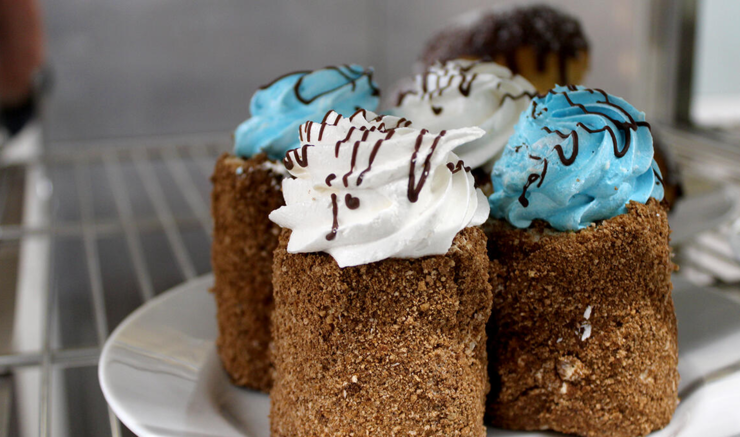 Компот, кстати, не предлагают. Зато есть и кефир, и кисель, и чай, и морс. Есть и десерты, и булочки — можно взять к чаю беляшей, пирожков, или песочную полоску по-гомельски.