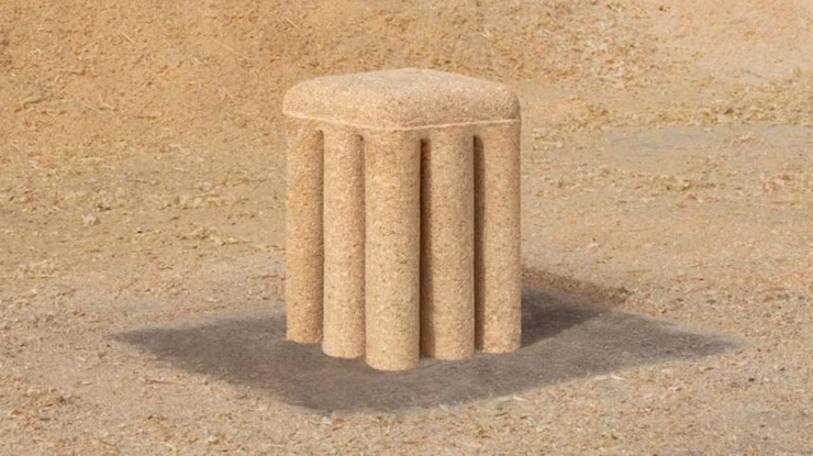 Табурет Briket не содержит металла или других неприятных сюрпризов. По сути, это просто большая древесная гранула, похожая на те, что используются в пеллетных горелках.