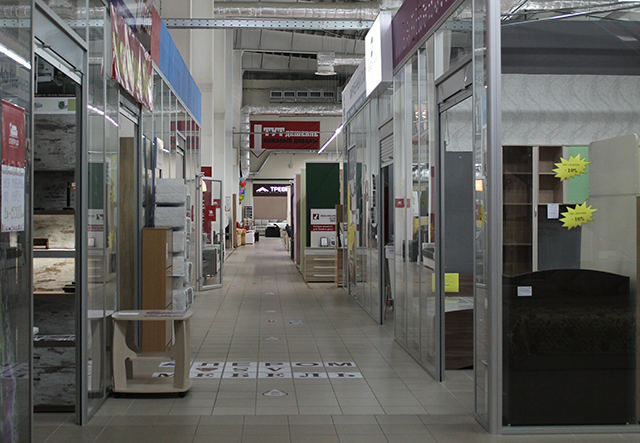Во вторник утром в центре немноголюдно, редкие покупатели прогуливаются вдоль павильонов, присматривая в свои жилища кровати, кресла, диваны.
