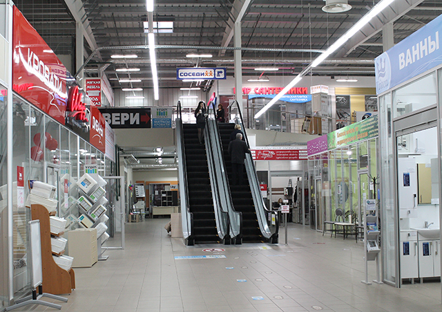 Два года назад на этом месте планировали открыть гипермаркет одной из продовольственных сетей. Изменения на рынке вынудили продуктового ритейлера приостановить развитие проекта. После проведения маркетинговых исследований решили сделать здесь мебельный торговый центр, в котором можно было бы приобрести все: от колесика для тумбочки до роскошного комплекта мебели.
