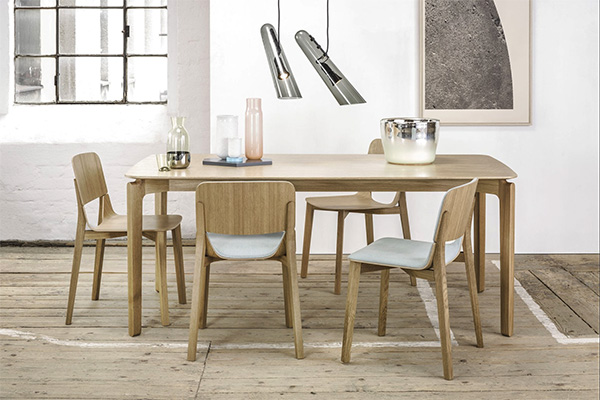 «В первую очередь эти идеи были воплощены в дизайне стульев: основание сделано из массива, а сиденье и спинка — из легкой гнутой фанеры. Помимо характеристик деревьев как таковых, мы вдохновились формами их отдельных частей. Например, в поперечном сечении спинки можно увидеть мотив гибкого зеленого листа».