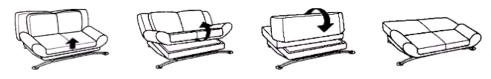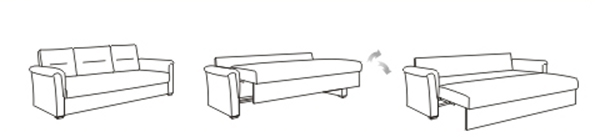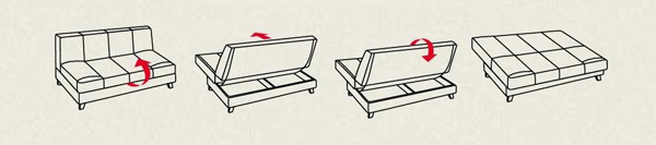 Начать обзор мы решили со старейшего и самого простого механизма. Как разложить такой диван интуитивно знает каждый, кто родился в советское время. Сиденье конструкции поднимается вверх до щелчка, а опускается уже вместе со спинкой. Главный минус «книжки»: для того, чтобы превратить диван в кровать, изделие нужно слегка отодвинуть от стенки.