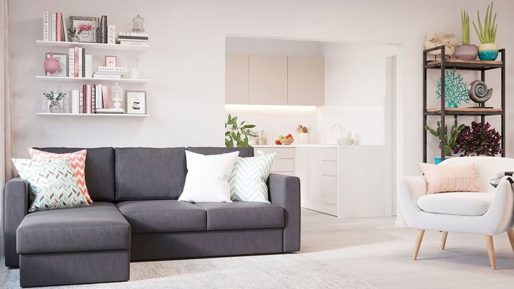 Как сообщает Оnliner.by, для проживания одного взрослого человека в «однушке» площадью 42,5 кв. м мебельный пакет будет состоять из углового дивана, тумбы под телевизор, обеденного стола и стульев, ковра, встроенного гардероба, встроенной кухни, а также холодильника, стиральной машины, вытяжки, варочной поверхности и духового шкафа.