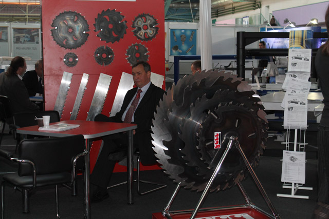 Вдоль павильонов прохаживаются как случайные зеваки, так и по-настоящему заинтересованные посетители. Зал заполнен различными механизмами для обработки дерева: начиная от оборудования для первичной распиловки и сушки древесины, заканчивая автоматизированными обрабатывающими центрами и производственными линиями для мебельного производства. У самого входа мы получили буклет и поговорили со Светланой Звездиной, помощником директора ЗАО «МинскЭкспо», компанией-организатором выставки: