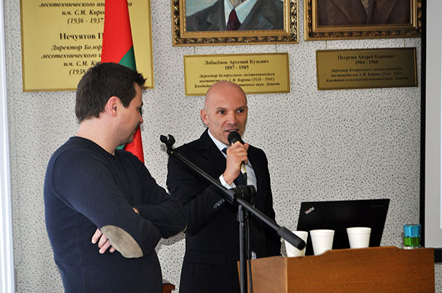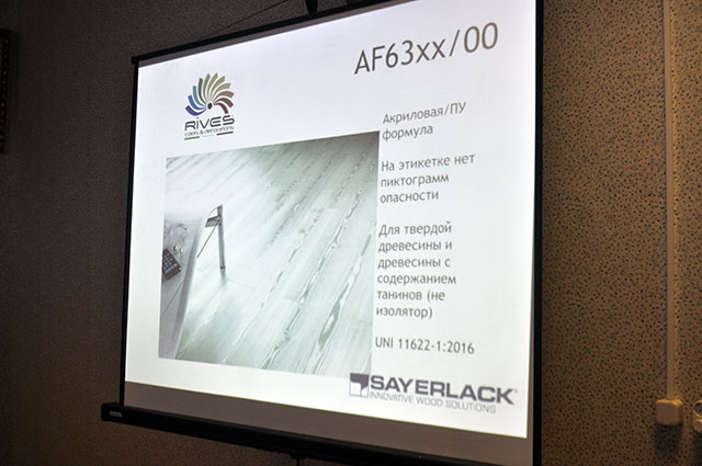 - В рамках первой части речь шла о последних тенденциях в области отделки изделий из древесины. Для освещения этой темы мы пригласили дипломированного специалиста из Италии, доктора химии Кристиана Бузато, являющегося представителем итальянской компании Sayerlack.