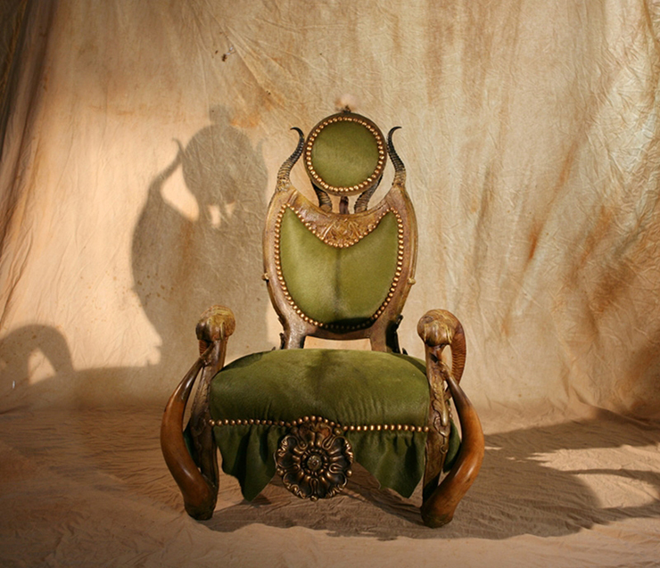 Французский дизайнер Мишель Аяр, один из воплотителей фэнтези-стиля в интерьере, создает уникальные изделия из натуральных материалов — звериных шкур, когтей, костей животных, а также металла и дерева. Изделия дизайнера могут даже показать кому-то неприятными или агрессивными, но, бесспорно, они способны создать волшебную и необычную атмосферу, которая сразу же напоминает сюжет скандинавских саг или чертоги подземных богов.