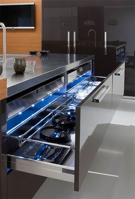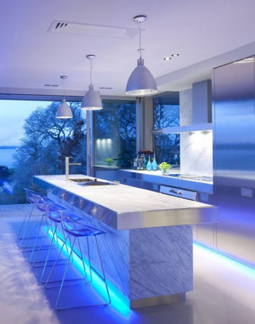Встроенные светодиоды, которые способны не только осветить кухню, но даже изменить ее цвет в соответствии с настроением и личными предпочтениями.