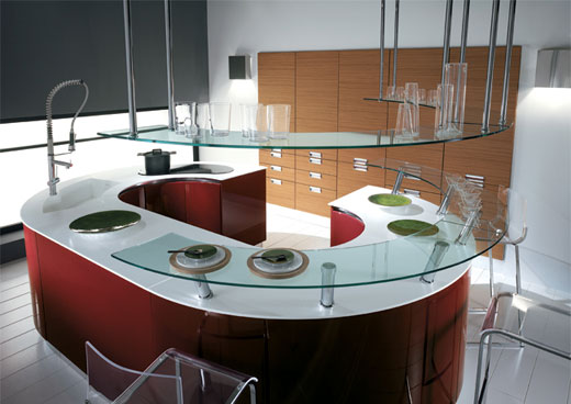 Эргономичный кухонный остров сегодня – это большая рабочая поверхность, современная раковина и встроенные шкафы, бар-зона, и даже встроенная музыкальная техника. Сегодня также модно устраивать подвесные шкафы, которые крепятся к потолку. Современные кухни соответствуют девизу: практичная красота.