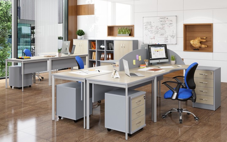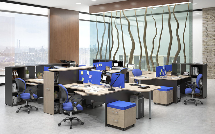 Офисная мебель, состоящая из разных модулей и элементов, будет хорошим вариантом, поскольку ее можно в любой момент собрать и разобрать. Это окажется дальновидным решением, когда ваша компания решит переехать в другое место.