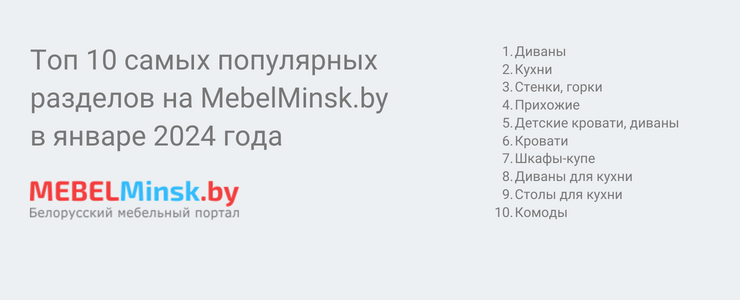 MebelMinsk.by проанализировал запросы пользователей за январь 2024 года. Самыми популярными стали разделы «Диваны» и «Кухни».