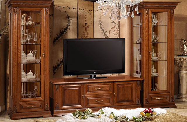 В фирменном магазине предприятия, расположенном в городе Слониме, нам сообщили, что на данный момент в наличие имеется только один шкаф-витрина и тумба под ТВ в цвете орех, но пообещали, что на днях все элементы коллекции появятся в продаже.