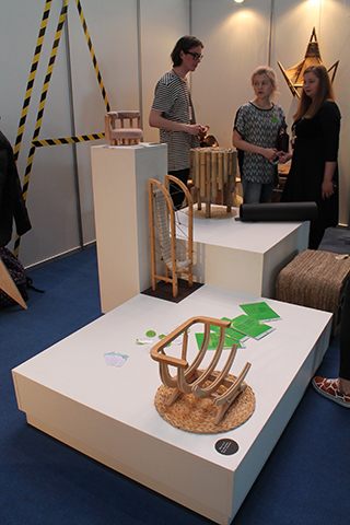 После такой рекламы мы сразу отправились к участникам из соседних стран, чтобы увидеть, какую мебель они привезли. Дизайнер промышленных вещей из Украины Юрий Цегла представил необычные кресла-гамаки под названием «Колыхва».