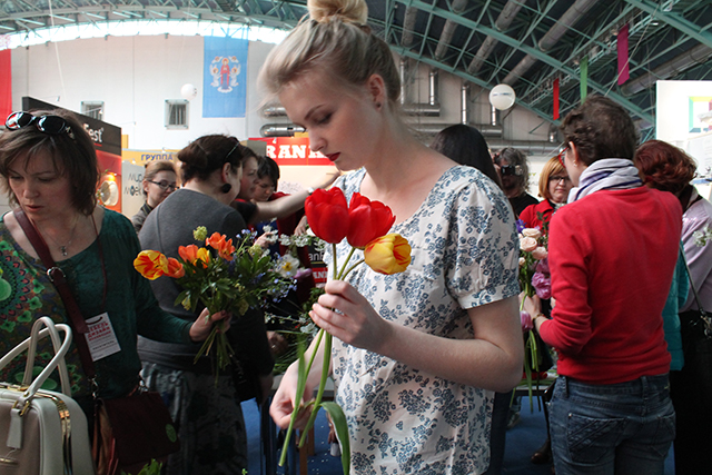 Гуляя по залу манежа, мы увидели толпу зевак и море цветов. Желающие могли поучаствовать в мастер-классе по флористике.