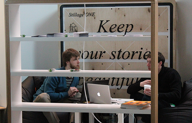 – Нас пригласили сюда молодые белорусские дизайнеры. Моя компания называется «KiTAIP». В переводе с литовского это означает «иначе». Мы пробуем делать мебель чуть-чуть иначе, чем другие. То, что вы видите, это совсем новый дизайн. Мы сделали эти полки для выставки в Вильнюсе месяц назад. Получилась такая интересная штука. Может, через 2 недели будем с ней в Лондоне, – рассказал о своих планах Далиус Разаускас.