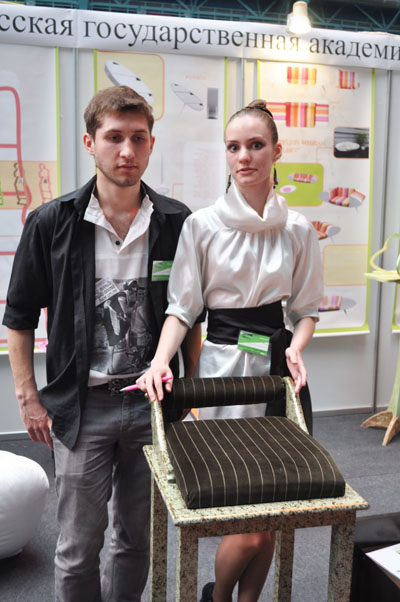 На выставке присутствовала и экспозиция от молодых дизайнеров из Белорусской Государственной Академии Искусств. Ребята радуют своими яркими образцами не только рядовых посетителей выставки, но и мебельщиков. «Представители производителей мебели подходят, интересуются и берут номера телефонов тех дизайнеров, чьи образцы им больше всего понравились. На этих предприятиях ребятам будет предложено прохождение практики или даже постоянная работа», - рассказывает о смысле экспозиции студентка третьего курса Милослава Петухова.