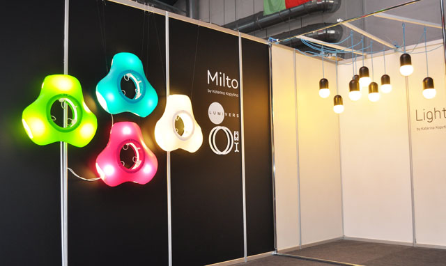 Дизайнер из Москвы Катерина Копытина представляет на выставке две инновационные модели ламп «Milto» и «Light Bean». «Milto» - легкая разборная конструкция со съемными чехлами. Если вам надоел цвет вашей лампы, вы можете снять каркас и заменить его на новый. «Light Bean» или светобоб (так называет светильник сама Катерина) представляет собой деревянный патрон и большую круглую лампочку, которые вместе создают одновременно простой и завораживающий дизайн.