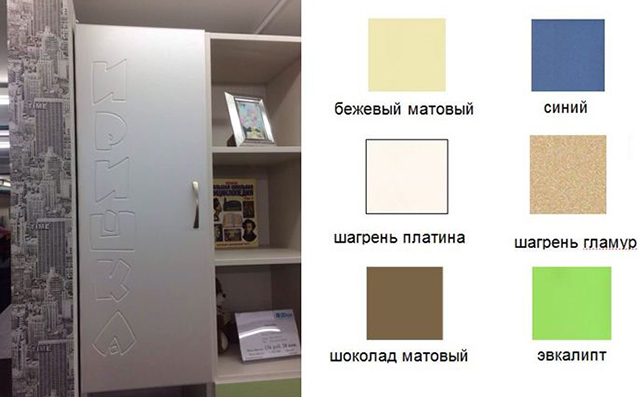 В 2017 году мы модернизировали коллекцию детской мебели «Слимпи». Теперь ее можно заказывать с фасадами МДФ, на которые по желанию покупателя мы наносим имена владельцев мебели. Сейчас доступно 6 цветов фасадов, которые можно комбинировать с цветами коллекции «Слимпи».
