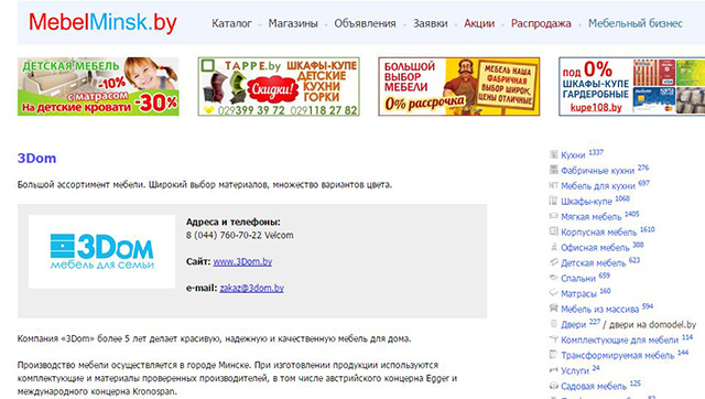 — В основном клиенты приобретают мебель 3Dom, придя в торговый центр «Домашний Очаг». Размещаемся на сайте MebelMinsk.by, где активно рекламируем и продаем свою мебель.