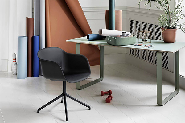 Стул «Fiber», созданный дизайнерским дуэтом Iskos-Berlin для датской компании Muuto, сделан из пластика, специально предназначенного для вторичной переработки, и древесных волокон. Изначально модель производилась в белом, сером, коричневом и красном цветовом оформлении, а совсем недавно увидел свет и черный вариант.