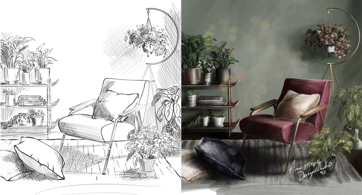 Поговорили с Анастасией Давыденко, автором скетчей и эскизов от руки для дизайнеров и декораторов о том, как создаются иллюстрации и почему они востребованы среди профессионалов.
