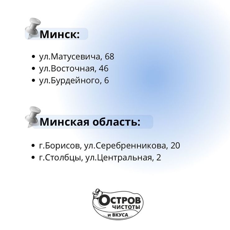 В Минске и Минской области открыто несколько торговых точек. Планируется расширять сеть и восстанавливать работу всей сети в полном объеме.