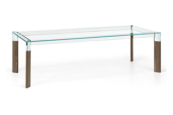 Обеденный стол Perseo создан по образцу классического европейского стола с одним существенным отличием: не только столешница, но и царги, а также верхние части ножек выполнены из 40-миллиметрового стекла. По словам дизайнера Паоло Грасселли, использование минимального объема древесного массива придало изделию «интерьерной гибкости» — расширился спектр вариантов дизайна помещений, с которыми столик может гармонировать.