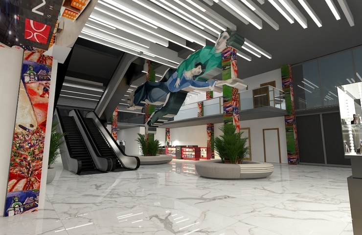 Одной из «фишек» ТРЦ Metro Park станет нестандартное оформление внутреннего пространства с декором в стиле картин художника Марка Шагала.