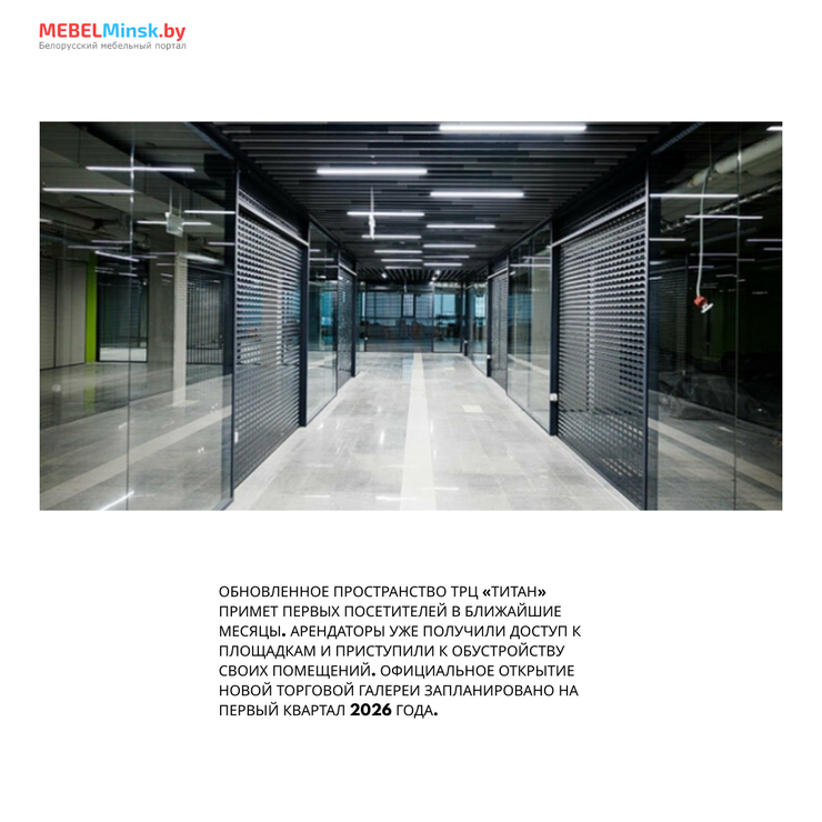 Практически одновременно, в первом квартале 2026 года, свои двери вновь откроет обновленное пространство ТРЦ «Титан». По информации застройщика, арендаторы уже получили доступ к площадкам и приступили к обустройству своих помещений, готовясь к официальному открытию новой торговой галереи в ближайшие месяцы.