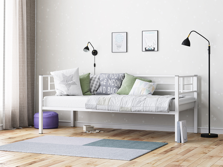 Одно из главных преимуществ — стоимость. Металлическая кровать стоит меньше, нежели аналога из дерева или МДФ. Если бюджет ограничен, то стоит рассмотреть такой вариант.
