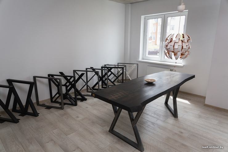 Мебель под заказ бизнесмены почти не делают: каждый стол просто создается и ожидает своего покупателя. Вся готовая продукция находится в минском шоу-руме. Салон, кстати, не похож на типичный мебельный магазин: на входе нет вывески, внутри не дежурит продавец, а дверь чаще всего чостается закрытой: такую мебель не покупают случайные прохожие.