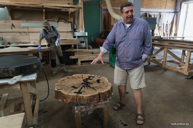 В Смолевичах бизнесмены арендуют обычный ангар в промышленной зоне. В его цеху работает всего человек пять: ребята не гонятся за объемами. Цены большинства столов на этом производстве достигают тысяч евро. В последние месяцы идет работа над самым серьезным проектом, разработанным здесь. Огромный дубовый стол для переговоров Барт оценивает в €15 тыс. Покупатель на него уже нашелся.