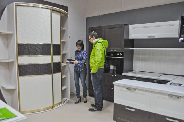 В магазине готовы предложить изготовление кухни, детской, шкафа купе, гостиной или спальни по индивидуальному проекту. Для удобства клиентов на стене магазина размещен большой экран, на котором можно детально познакомиться с разработанными проектами, а также просмотреть готовые варианты из каталога.