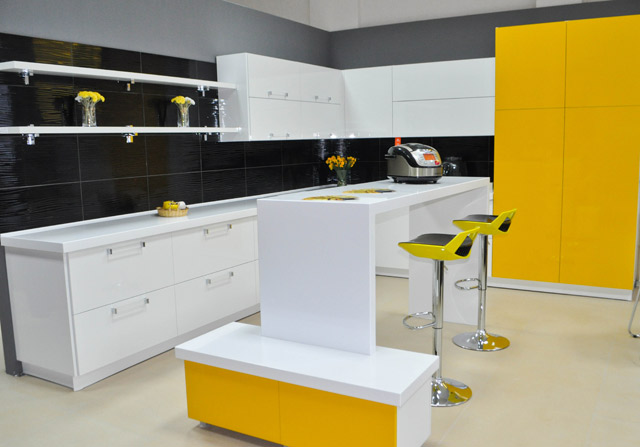 Не стоит думать, что в магазине предложат исключительно дорогостоящий массив, стильные и яркие гарнитуры из пластика или мдф здесь ничуть не уступают по внешним параметрам и функциональности. Все, как говорится, дело вкуса.