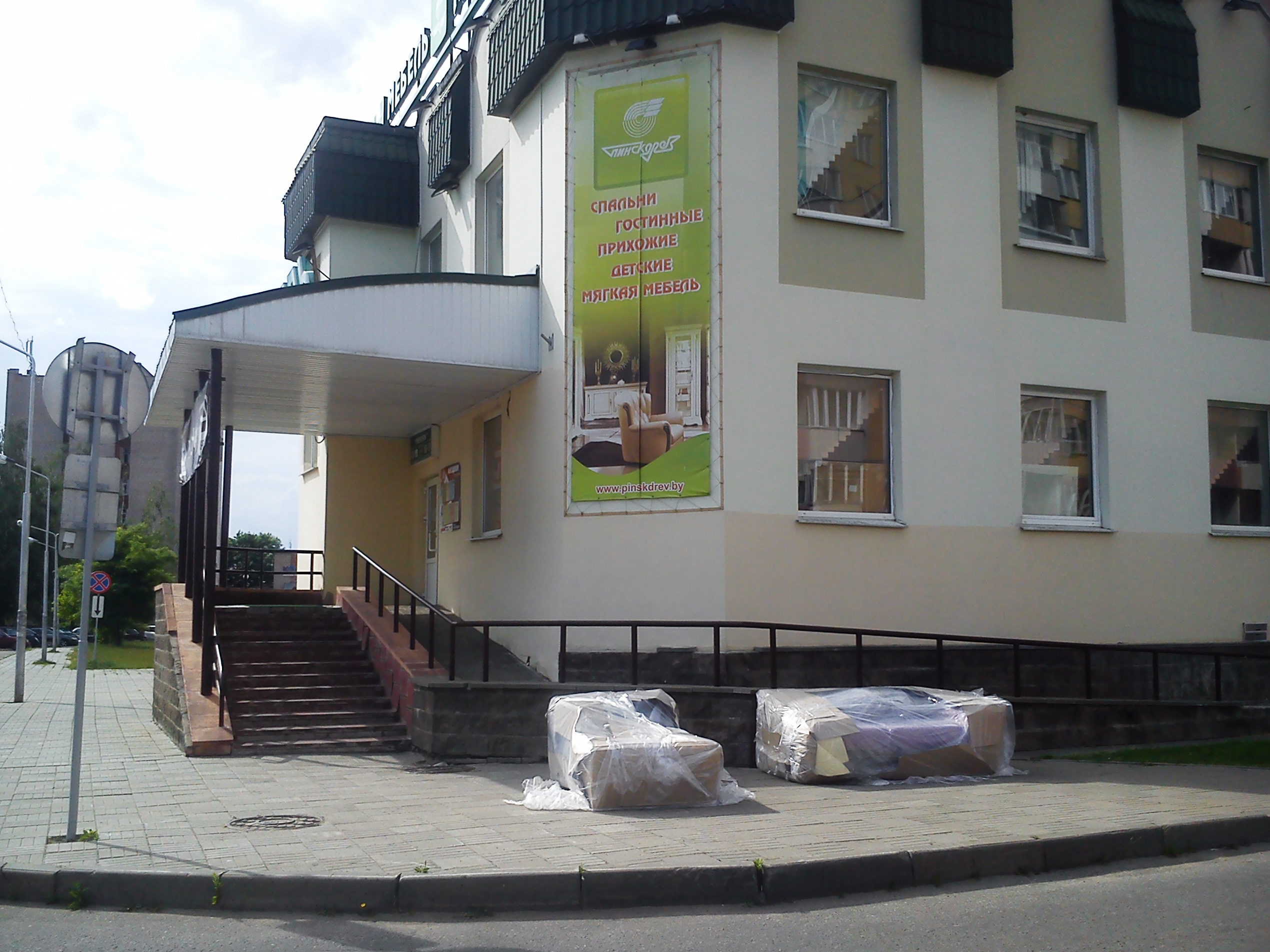 К нам обратилась клиентка фирменного магазина «Пинскдрев» в Витебске. Девушка по имени Ирина 21 июля приехала забирать заказанный диван и обнаружила его на тротуаре возле магазина.