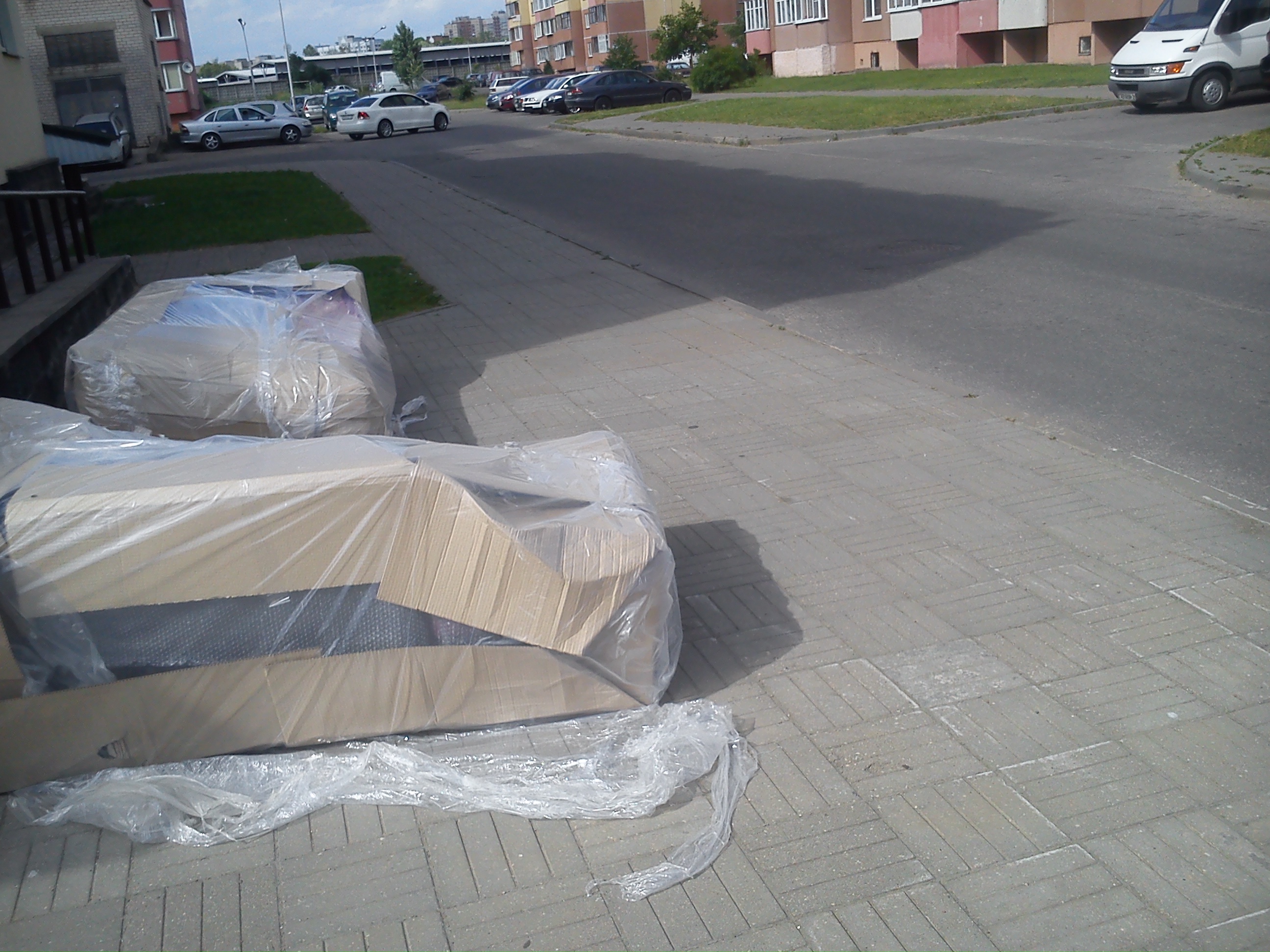 Когда покупатель заказывает мебель со склада, мы выгружаем ее на улице и ждем заказчика. Когда он приезжает, мы распаковываем и осматриваем товары там, где они стоят.