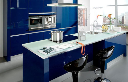 Синий или голубой цвет прекрасно идет в сочетании с другими, более яркими тонами, либо, в случае, если у вас хорошо освещенная кухня. В противном случае, кухня станет монотонной и безликой. Подобные тона не лучшим образом влияют на аппетит. Хорошим решением будет сочетание синего с зеленым, желтым или оранжевым цветом.