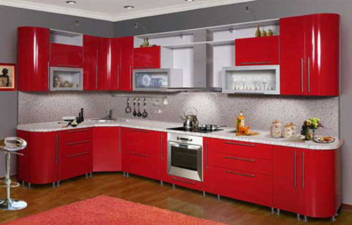Смелое решение – выбор красного цвета. Он оказывает возбуждающее действие на человека, способствует появлению аппетита, наполняет кухню жизненной яркой силой. Для меланхолического типа людей красная кухня может стать прекрасным стимулятором внутренних сил и эмоций. Но следует помнить, что яркие оттенки красного со временем могут вызывать раздражение и утомление, поэтому желательно остановить выбор на более мягких вариантах.