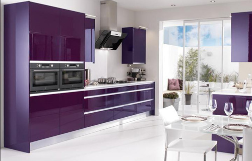 Фиолетовое исполнение выглядит красиво и оригинально, но его использование обосновано только для современного стиля. То же самое можно сказать и о сером цвете. К тому же, они подавляют аппетит человека. Но, если вы решили похудеть и любите нестандартные решения, то такой вариант станет для вас настоящей находкой.