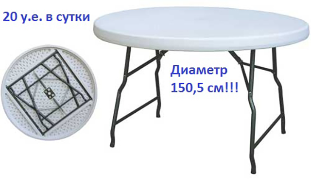На сайте shater-minsk.by можно взять на время типичную мебель для кейтеринга: раскладные пластиковые столы (круглые и прямоугольные) и стулья.