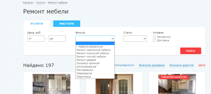 Всего представлено 197 актуальных предложений в различных ценовых категориях — от 20 BYN за мелкий ремонт, до 500 BYN за комплексную услугу.