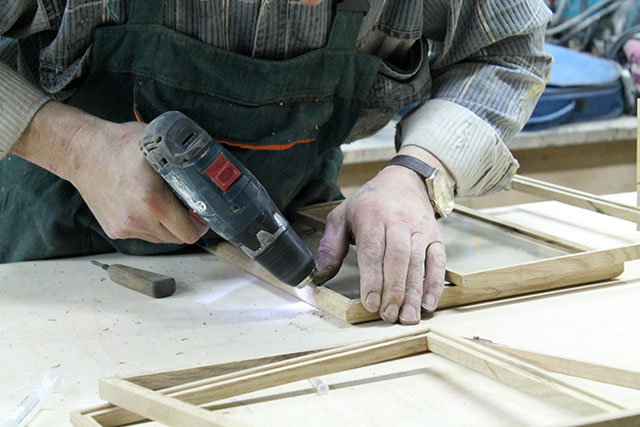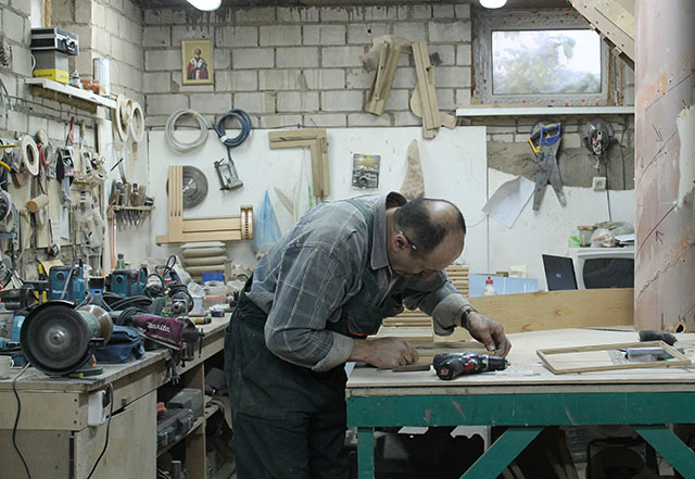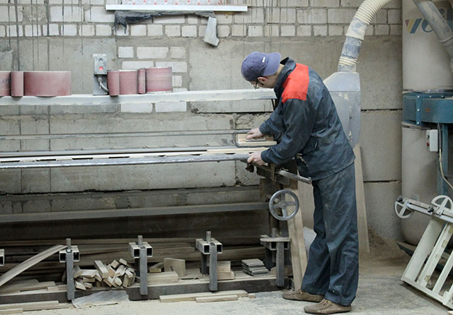 В цеху кипит работа. Мастер обрабатывает доску на станке, которая станет частью будущего изделия. Во все стороны летят деревянные стружки. Из-за шума работающих механизмов едва можно различить голос учредителя предприятия.
