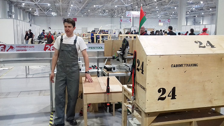 Работу конкурсантов оценивало компетентное жюри, в составе которого были российские специалисты и белорусский эксперт — мастер минского государственного профессионального лицея № 5 транспортного строительства Дмитрий Растюшевский, который, кстати, является выпускником БГТУ. Как раз минский профессиональный лицей № 5 и стал одной из профессиональных площадок для Ивана Скорба, а сам Дмитрий — наставником для нашего чемпиона. «Проверка изделий осуществлялась как в сборе, так и в разборе, — рассказывает наш собеседник. — Оценивали качество внутренних соединений, а также шиповые соединения. Вместе с тем, смотрели и на отделку, внешний вид стола, хотя это было субъективное мнение каждого из членов жюри. Тщательно проверяли размеры: допускалось отклонение плюс/минус 1 мм».